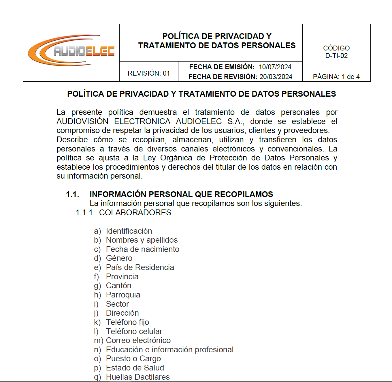 Implementar mecanismos para reducir riesgos informáticos y mantener la privacidad, seguridad de la información personal de nuestros clientes, proveedores y colaboradores que intervienen en los procesos relacionados con el giro de negocio.